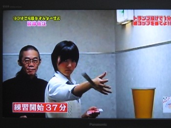 トランプ投げ・・・トランプを手裏剣のように投げて、紙コップに当てる